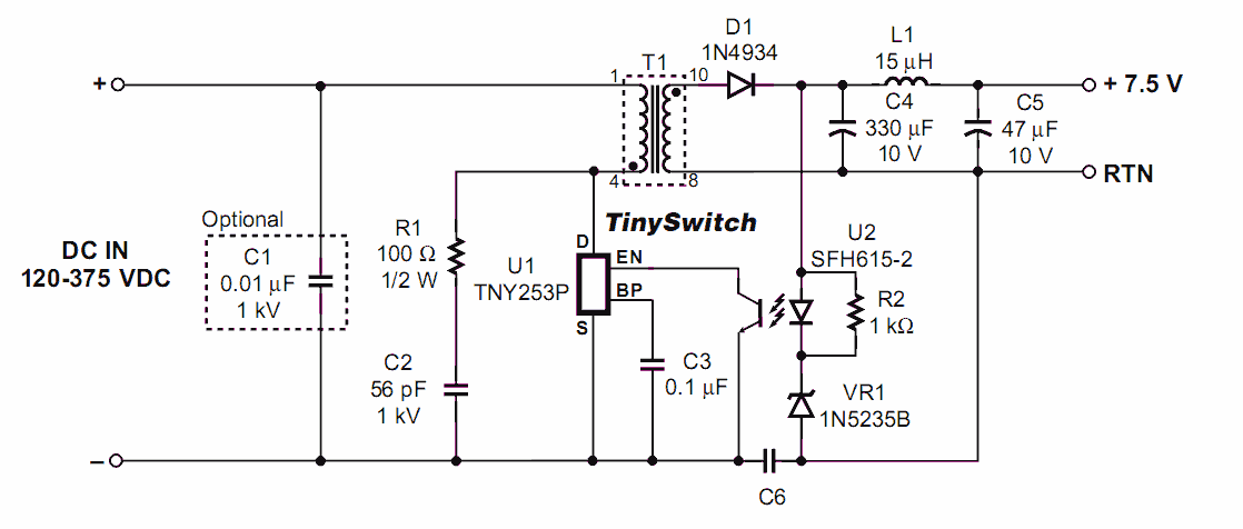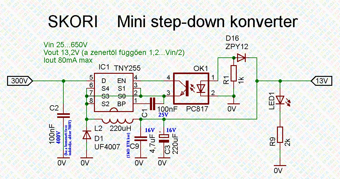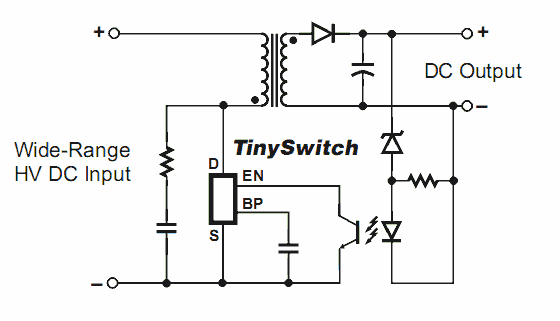 Az alábbi kapcsolási rajzokat a TNY255 adatlapjáról másoltam ki: