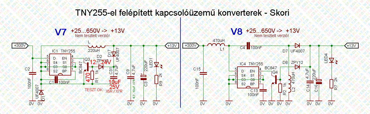 Megrajzoltam a TNY255-re épülõ DC/DC koncverter néhány lehetséges további verzióját (lásd a lenti rajzokat).
