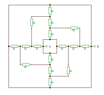 Egy egyszerû feladat! Mennyi az eredõ ellenállás az alábbi képen szereplõ áramkörben, az A és a B pont között, és hogyan lehet a legegyszerûbb módon kiszámolni?