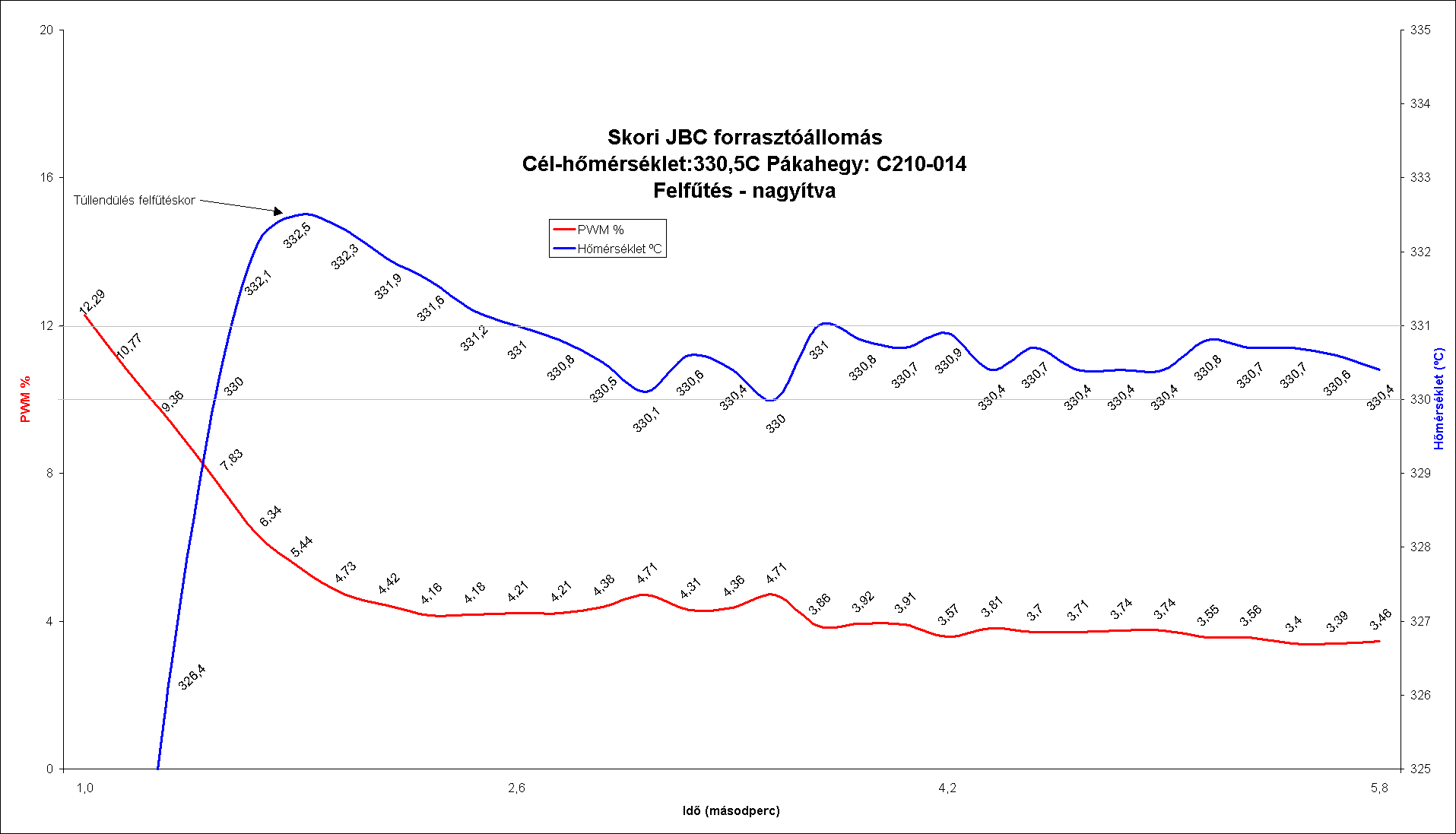 1 másodperc alatt (sacc. 0,6...0,8s) felfût, 330°C-ra. A szabályzás mûködését