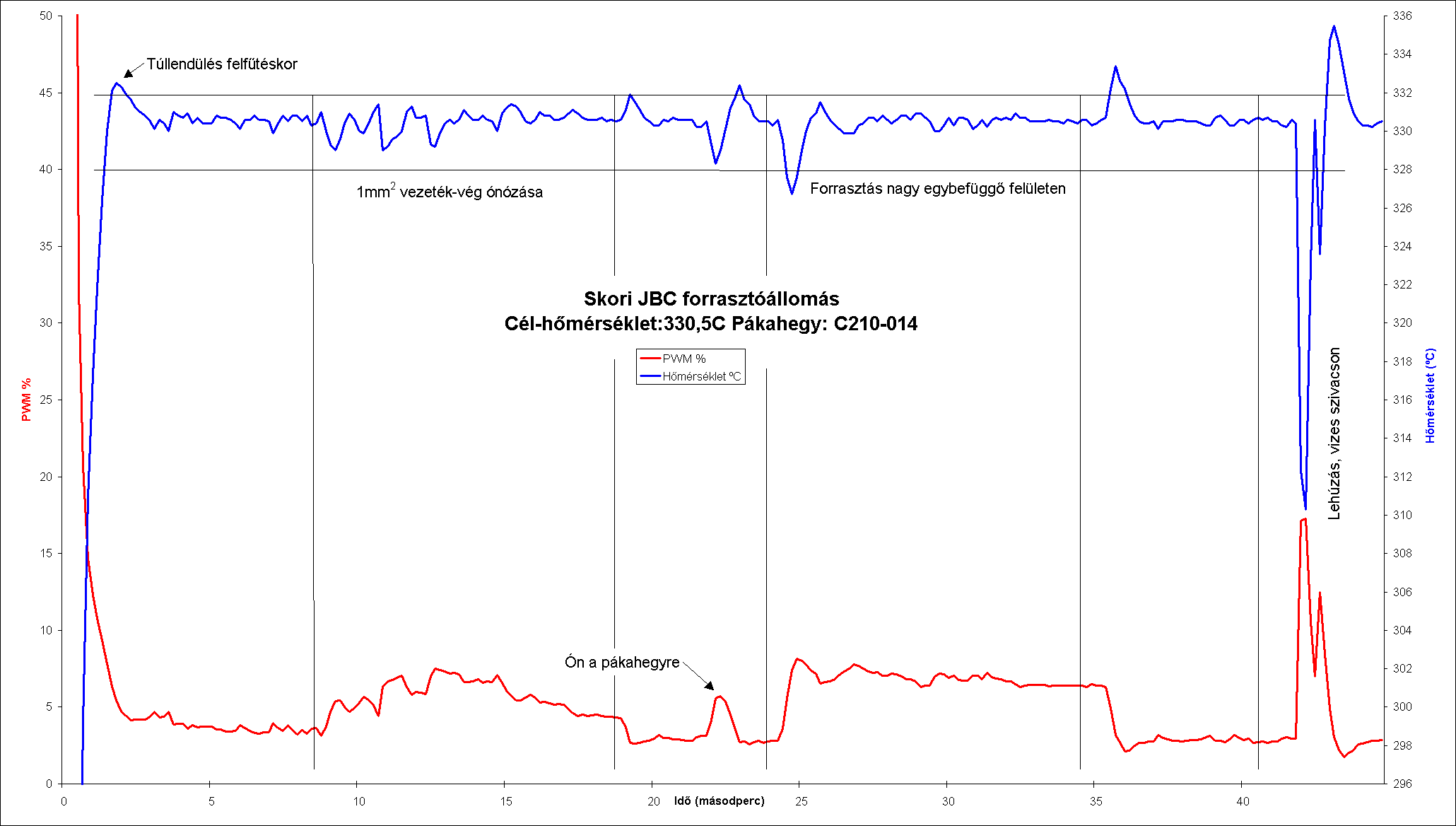 Végeztem néhány újabb mérést, a JBC210-es pákaheggyel,