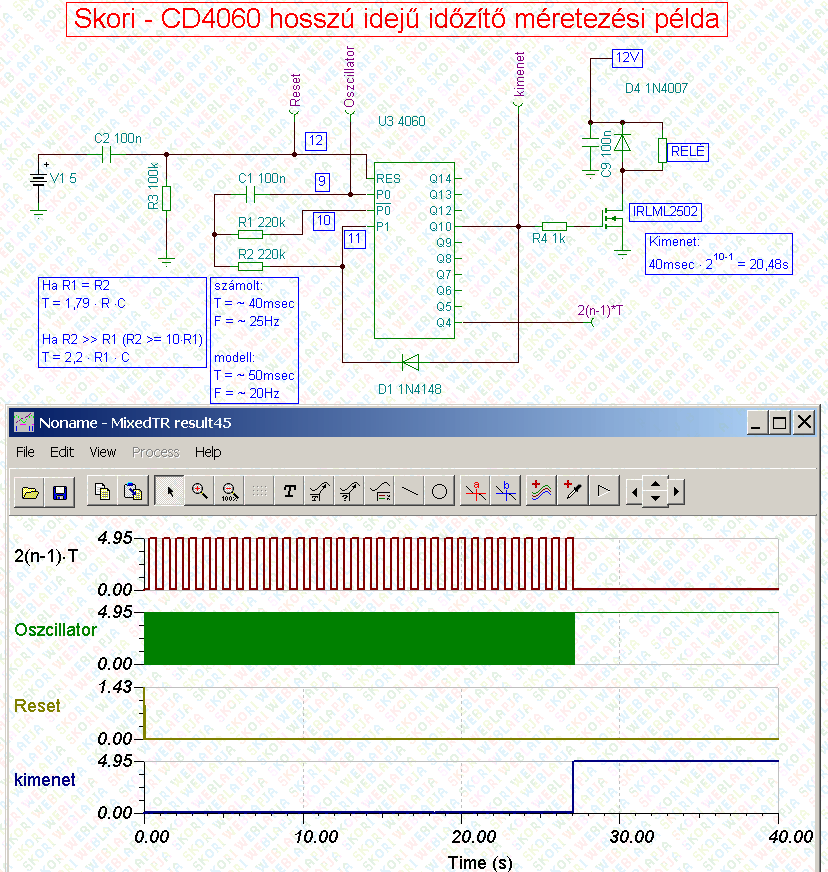 a valóságos megépített áramkör időzítése eltérhet valamennyivel, ezért célszerű a képre is felírt időállandókkal kiszámolni