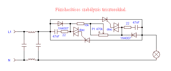 Egy újabb fázishasítós teljesítmény szabályzó áramkör, tirisztorokkal.