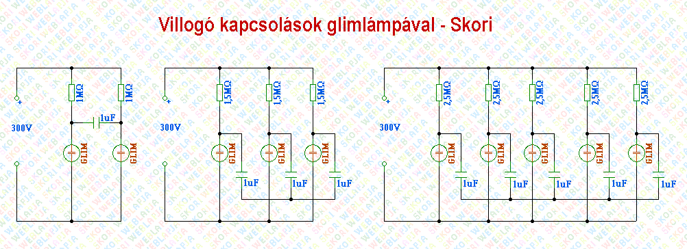 zömében is glimlámpa a fényforrás. A lenti kapcsolások közül az első esetében a két glim felváltva fog világítani, a többi kapcsolás