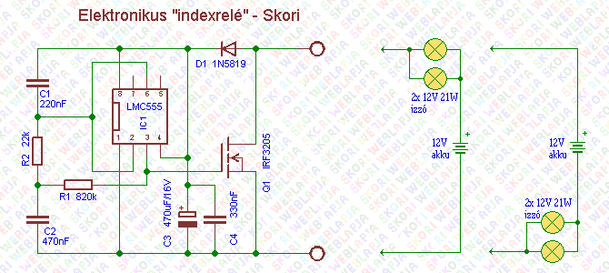 Ezzel az áramkörrel kiváltható a gépjárművek mechanikus "indexreléje"