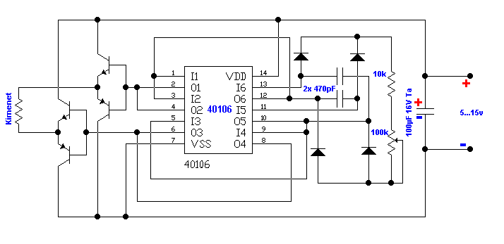 egyszerü megoldású. Ez persze könnyen megoldható egy egyszerü schmitt-triggeres kapukat tartalmazó digitális IC-vel. (4093, 40106, 74C14, stb....)
