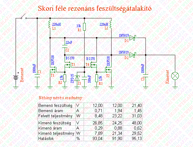 terhelés esetén, vagy terhelés nélkül a kimeneti feszültsége jelentösen megnövekszik. Fontos elönye, hogy a hatásfoka 90% feletti,