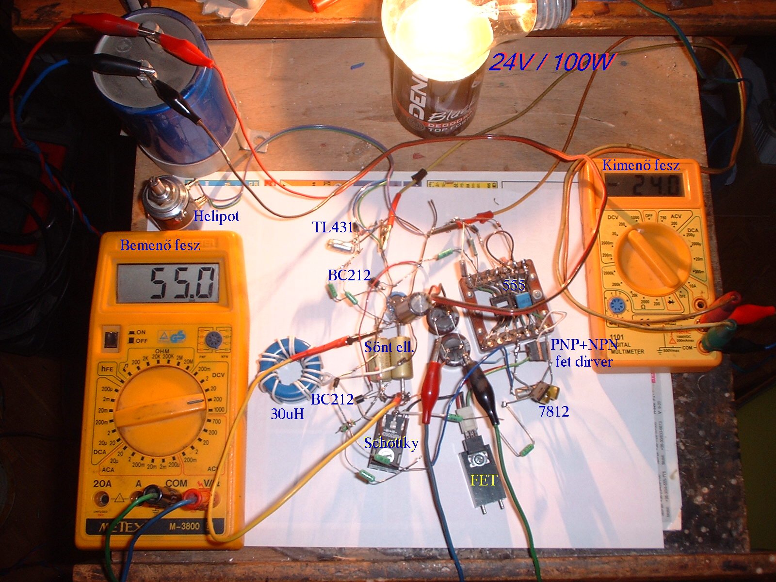 A próbálgatáskor a kimenõ feszültség kifejezetten stabil volt, 0,1V körüli csökkenést tapasztaltam a terhelés hatására.