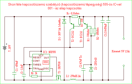 Ennél egyszerübb kapcsolóüzemû szabályzót szinte csak célIC-vel lehetne elképzelni (pl. LM2575 és hasonlók),
