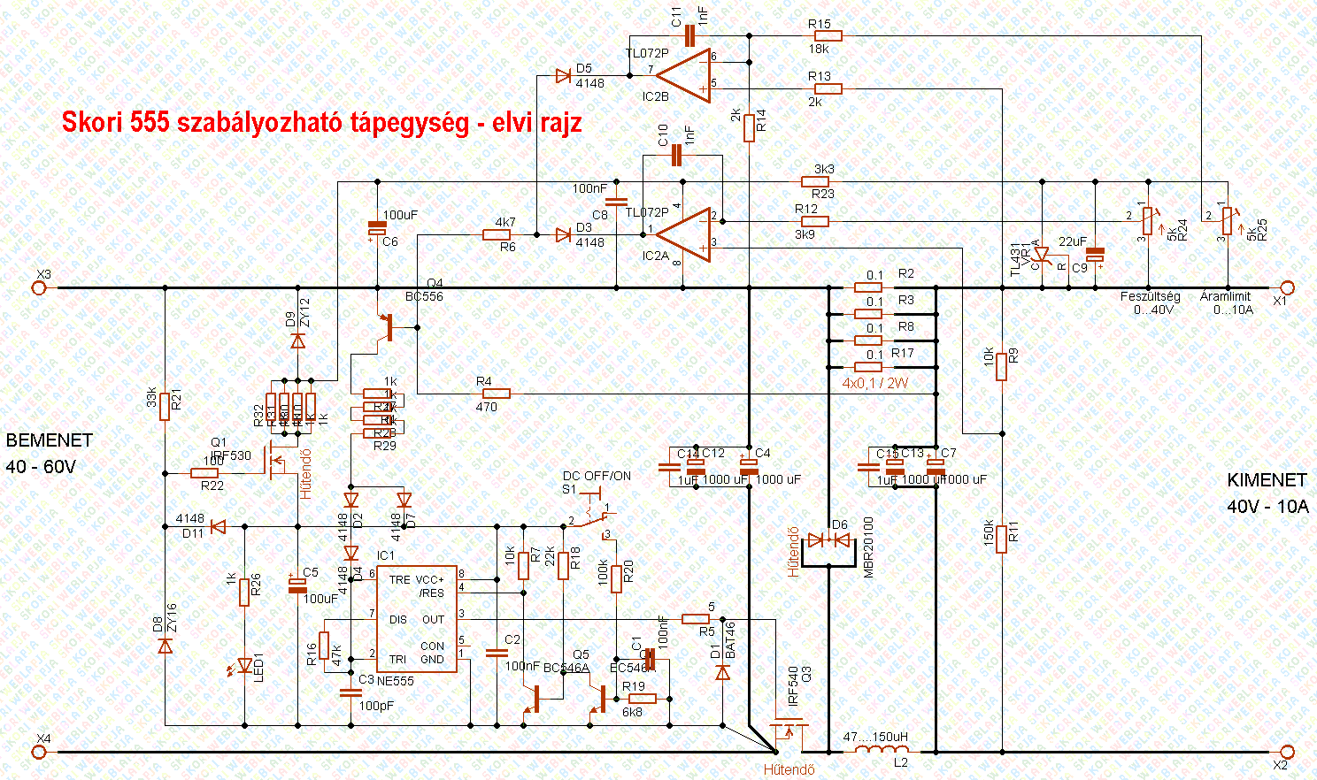 A következö rajz egy kis feszültségü nagy áramú verzió kapcsolása, megépítve/tesztelve nem volt: