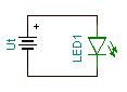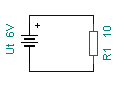 A rajz baloldalán a telep, a jobb oldalán az ellenállás rajzjele látszik. Az telep mellett az Ut és a 6V felirat látszik. Ez annyit jelent, hogy a