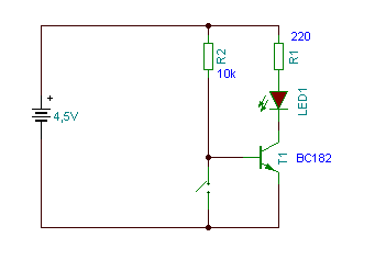polaritású feszültséggel) lehet használni. Nézzük mit csinál ez az áramkör! Alaphelyzetben a led nem világít, ugyanis a tranzisztor