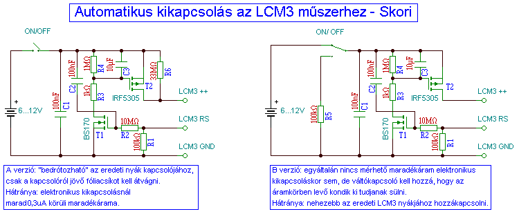 kapcsolás két verziója ennek a megoldásában különbözik. Az "A" verzióban ezt a 33M ellenállás oldja meg, a másik változatban a