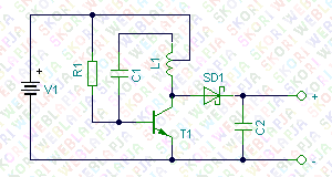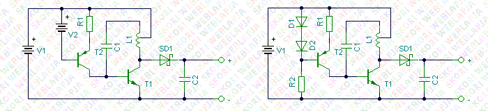 Ebben az oszcillátor áramkörben a tranzisztor kollektorfeszültsége a tápfeszültség fölé emelkedik, amikor a tranzisztor éppen zárt