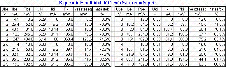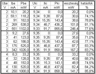 (valószinüleg gerjedt, de ezt nem néztem meg oszcilloszkóppal). Ha már szóba került a hatásfok, ideteszek pár mérési eredményt,