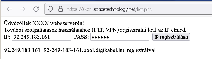 Tehát annyi a dolgunk, hogy először megnyitjuk a weboldalt, és beírjuk a jelszót. Ezután a szokásos módon el tudjuk érni a számunka megnyitott portokat.