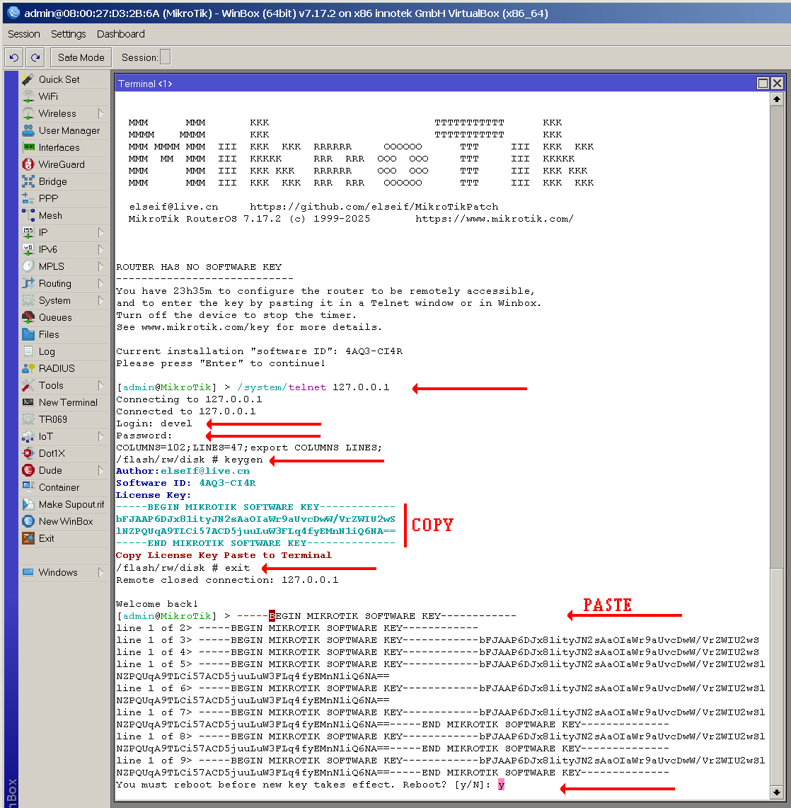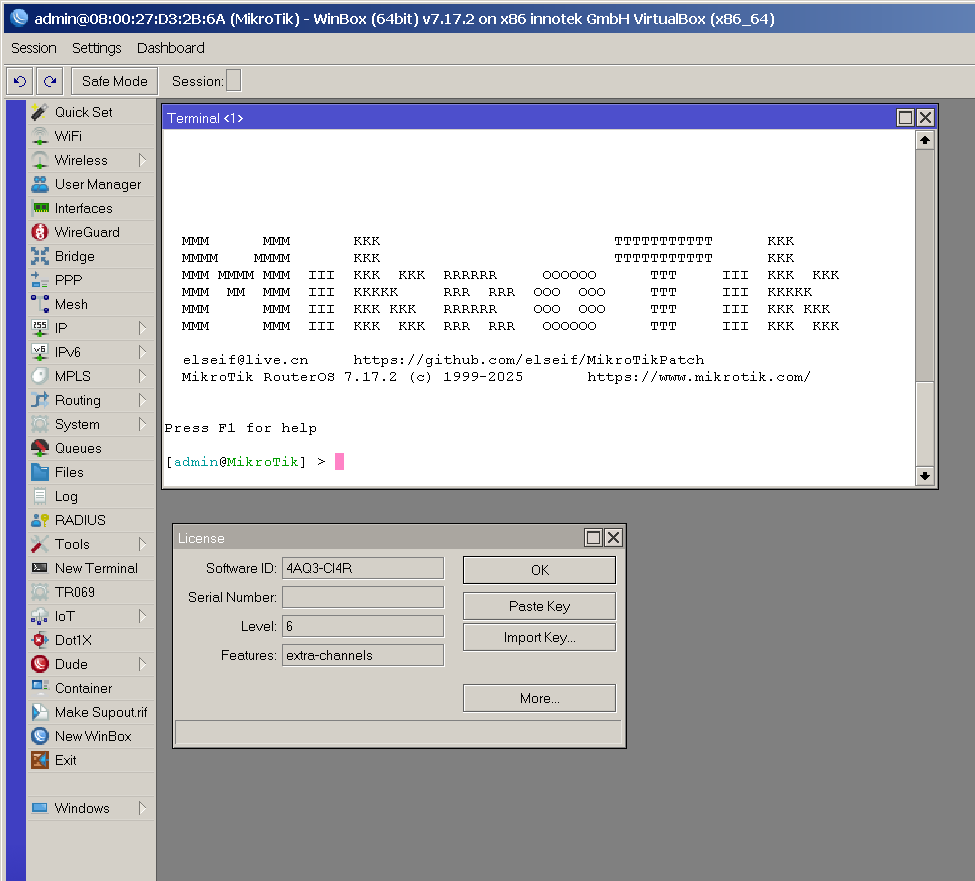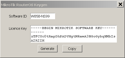 eredeti (tehát nem path-elt) RouterOs nem fogja elfogadni az így generált kulcsot, de a GitHub-on közzétett patch-elt verziók igen.
