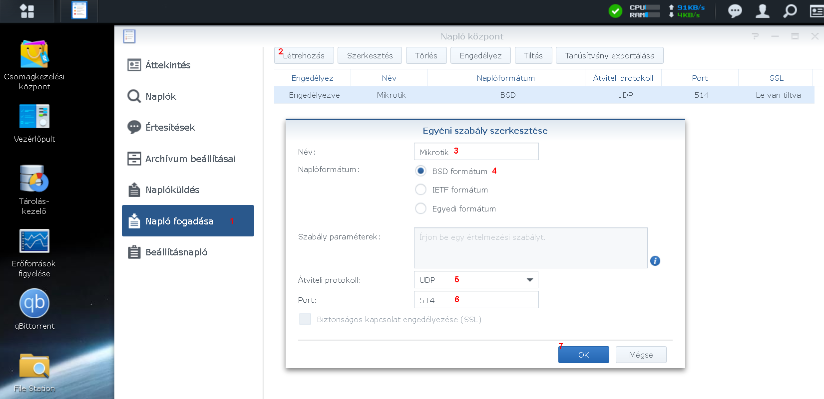 Ezek a beállítások az internet felől, a 80-as, ill. a 443-as portra érkező csomagokat továbbítják a NAS belső IP címére.