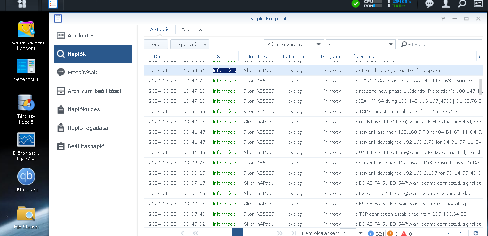 Ha ezzel is megvagyunk, és mindent jól állítotunk be, akkor az alábbi formában meg is jelennek a NAS napló központjában,