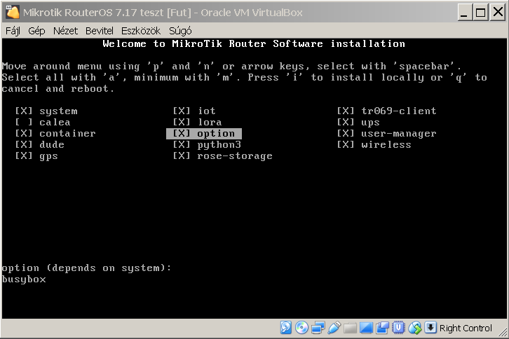 Itt kiválasztjuk mely csomagokat szeretnénk feltenni. A kulcsgenerátort az option (nemhivatalos) csomag tartalmazza.