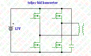 - A teljes híddal már jobb a helyzet, de itt mindig két feten folyik át a felvett áram, tehát a kisebb primer áram elõnyét elveszítjük azzal, hogy 2db helyett 4db fet fog fûteni... |