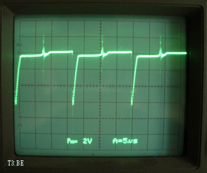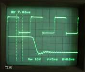 - Pont a fenti hátrányok miatt szokták a push-pull topológiát alkalmazni ilyen alacsony feszültségek esetén, azonban ennek is vannak hátrányai: A transzformátor mágnesezési induktivitásában tárolódó energia, az éppen nyitott FET lezárásakor, a másik FETen keresztül vezetõdik el (vissza a tápba). Azonban a két fél-primer tekercs közötti csatolás tökéletlensége folytán, túlfeszültség keletkezik a lezáró FET-en, és ennek az energiának egy része veszendõbe megy (hõvé alakul a FET-en, vagy ha van beépítve: a snubberen). Ez a táp kapcsolási veszteségét növeli. Hasonló okból a rezonáns kialakítás is nehezen valósítható meg, a gyakorlatban nehezen kezelhetõ lengések, tranziensek keletkeznek a rezonáns megoldásban is, amik veszteséget okoznak. |