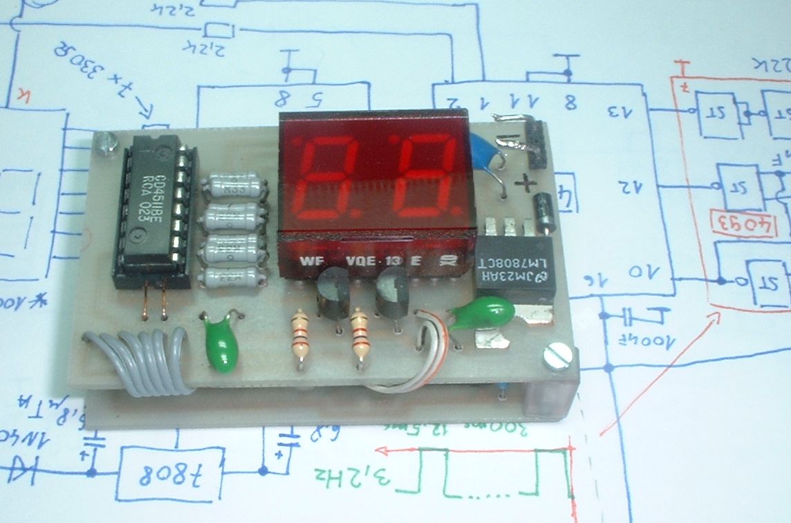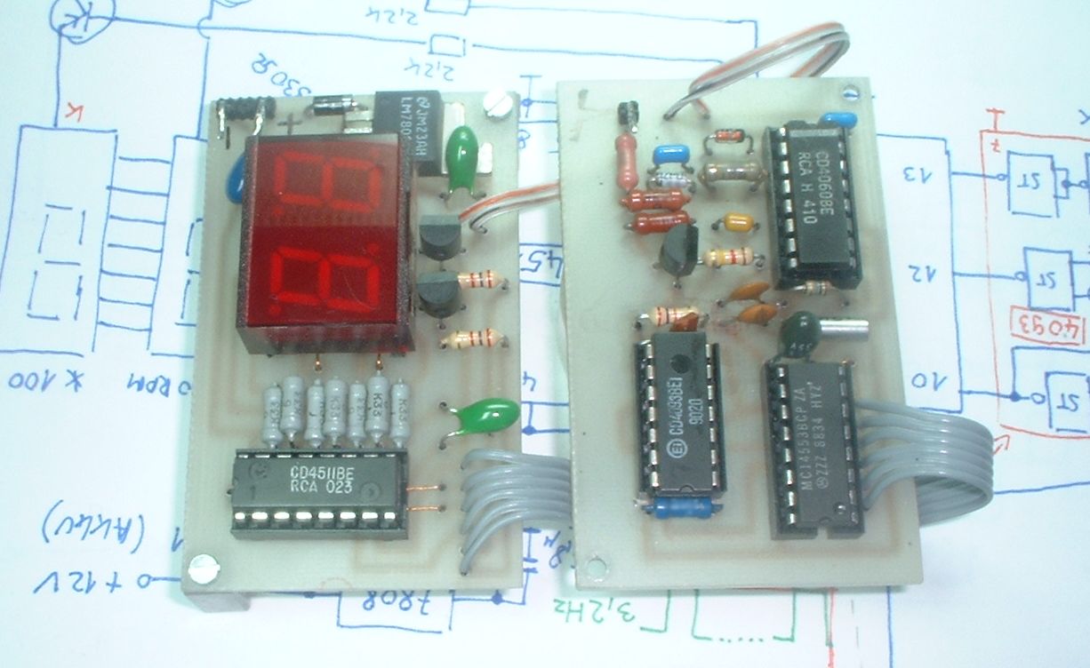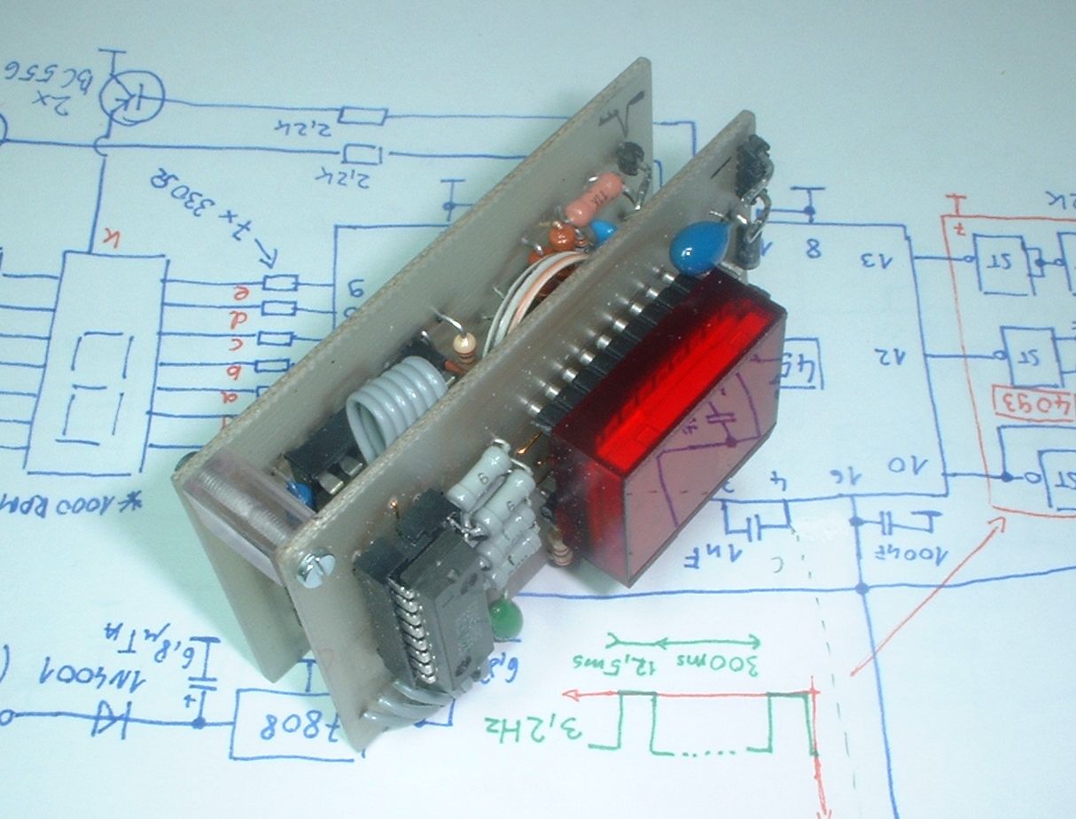 készített) fordulatszámmérõt. Az áramkör lényegében egy egyszerü frekvenciamérö, megszámolja hogy 0,3s alatt mennyi szikrát